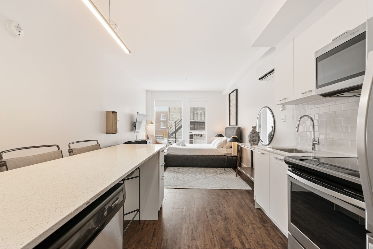 Plaza12 is a modern and stylish single bedroom apartment located in the heart of Rosemont la Petite Patrie (a borough 1 hour walk North or a 15 min public transit ride from downtown Montreal). It’s an area full of restaurants, cafés, shopping and entertainment, making it the ideal place to stay while exploring Montreal. The closest subway station is a 6 min walk away. The space features a fully-equipped kitchens. This space is not suitable for children below 13 nor for pets.