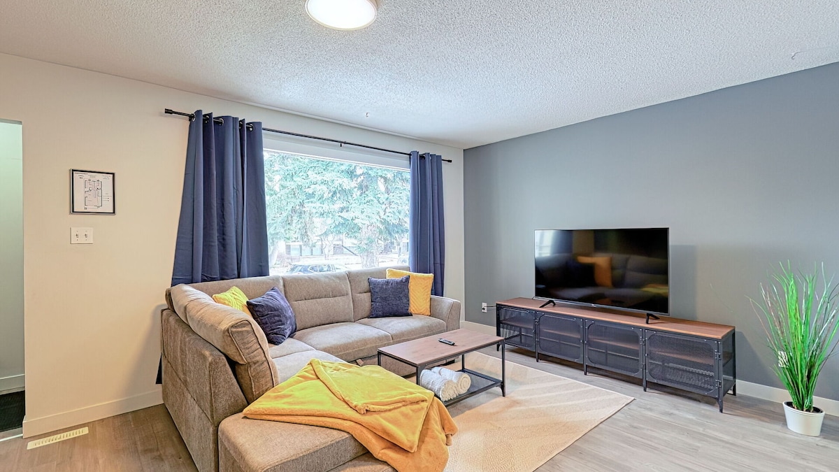 Enjoy a stylish and quiet experience at this centrally located place. 10 min drive to downtown and 1hr 23min to Banff. Contemporary appliances, designer furnitures, and a fully supplied whole kitchen! Stream movies and shows on our high-speed wifi and experience our excellent guest service that meets all your needs. Keyless self check-in through emailed guide makes entrance flexible and easy. Parking is free and always reserved for you. Visitors can park on the street for free.