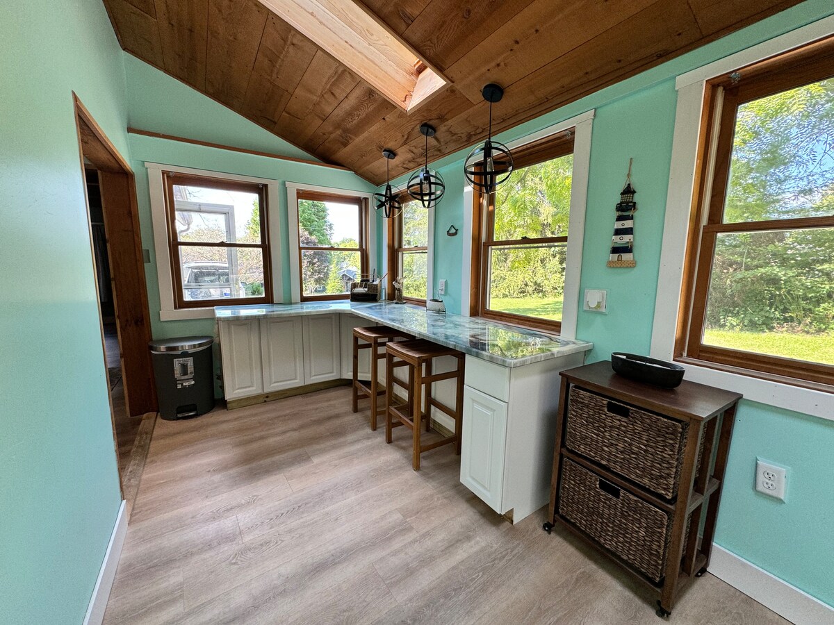 The lakefront two-bedroom one bath cabin is nestled on over an acre, offering stunning views of the sparkling waters and lush greenery surrounding it. The cabin boasts a cozy living area with a wood fireplace. The bathroom features modern fixtures and a shower. Outside, A private dock allows for easy access to the water, and providing endless opportunities for water activities and exploring the lake. Make sure to visit the beach located at the clubhouse.