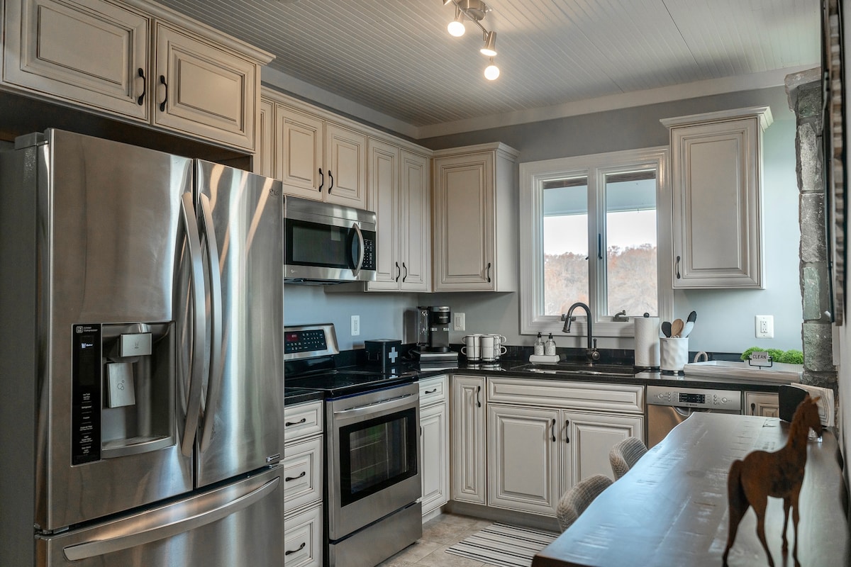 Large, sparkling-clean, light-filled cottage with peaceful views of grazing horses, swaying pastures and mountains all around. Oversized dine-in kitchen and gathering room allow for reconnection. Clean linens, comfortable beds and quiet, allow for great rest. Unwind, reconnect and recharge in this magical place minutes away from the hustle and bustle of Damascus and 45 minutes from downtown DC.