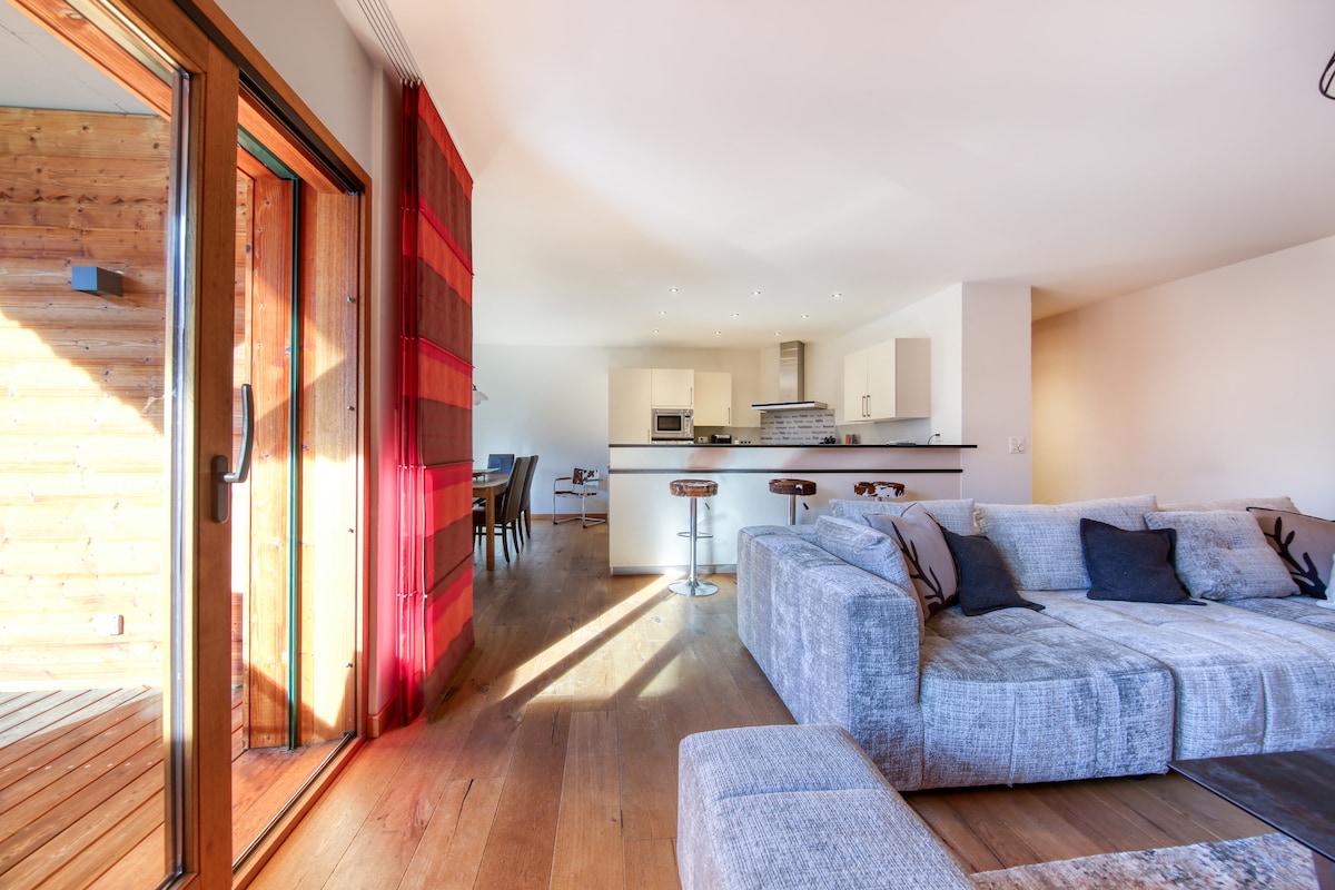 A luxurious home with professional cleaning and hotel quality cleaned sheets.A short drive to the ski lifts at Champery and grand paradis . A contemporary architect designed apartment nestled in breathtaking landscapes with stunning river walks on the doorstep. Our 4-bedroom flat is the perfect escape for your family gatherings or small groups. It offers beautiful mountain views, where you can bask in the fresh alpine air while sipping your morning coffee in our riverside garden