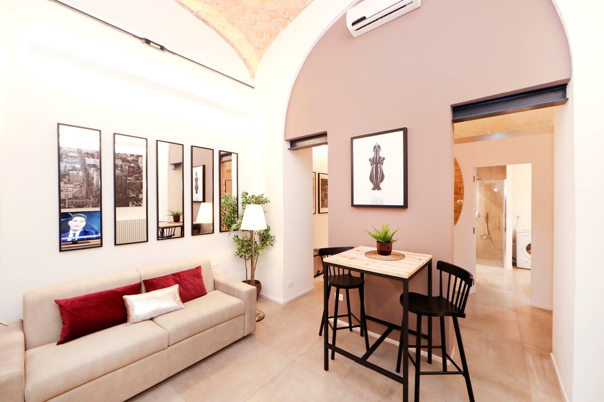 ming 45 sqm apartment is just an 11-minute walk from the Colosseum, located in the heart of the iconic Rione Monti district. Here, you’ll find a true oasis of peace surrounded by the monuments of ancient Rome. Rione Monti is one of the city’s most authentic neighborhoods, where new trends meet old traditions. If you’re looking to experience the real Rome, this is exactly where you’ll find it.