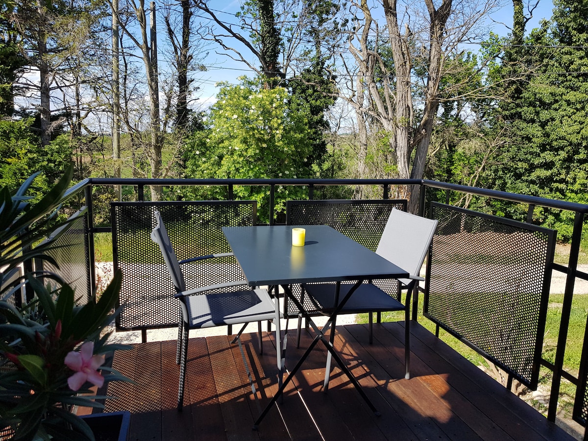 Apartment in the countryside of Chabeuil, 10 minutes from Valence. On the first floor of an old barn, the accommodation is independent with a terrace and covered patio. Free and secure outdoor parking in the yard. Accommodation with two bedrooms. Bed linen and towels included. Equipped kitchen: oven, fridge, freezer, microwave, Senseo coffee machine, kettle, electric stove). Rate for up to 2 people 10 euros per person per additional night