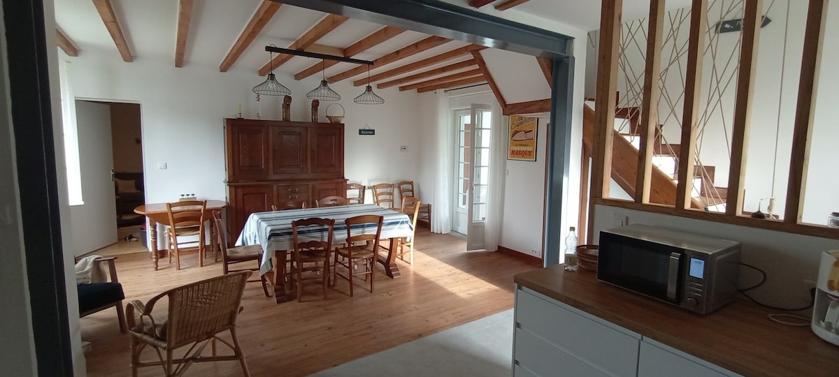 Located at the foot of the hiking trails, in a pretty Souletine house, this atypical and charming apartment in the center of the village of Tardets has everything you need for a peaceful and comforting stop with views of the mountains. Its little plus: the dynamic village has all the amenities, restaurants, grocery stores, tobacco, butcher shop, clothing stores, banks, and charging station for electric car. The bus that goes to Bayonne and the beaches passes 50 m from the apartment.