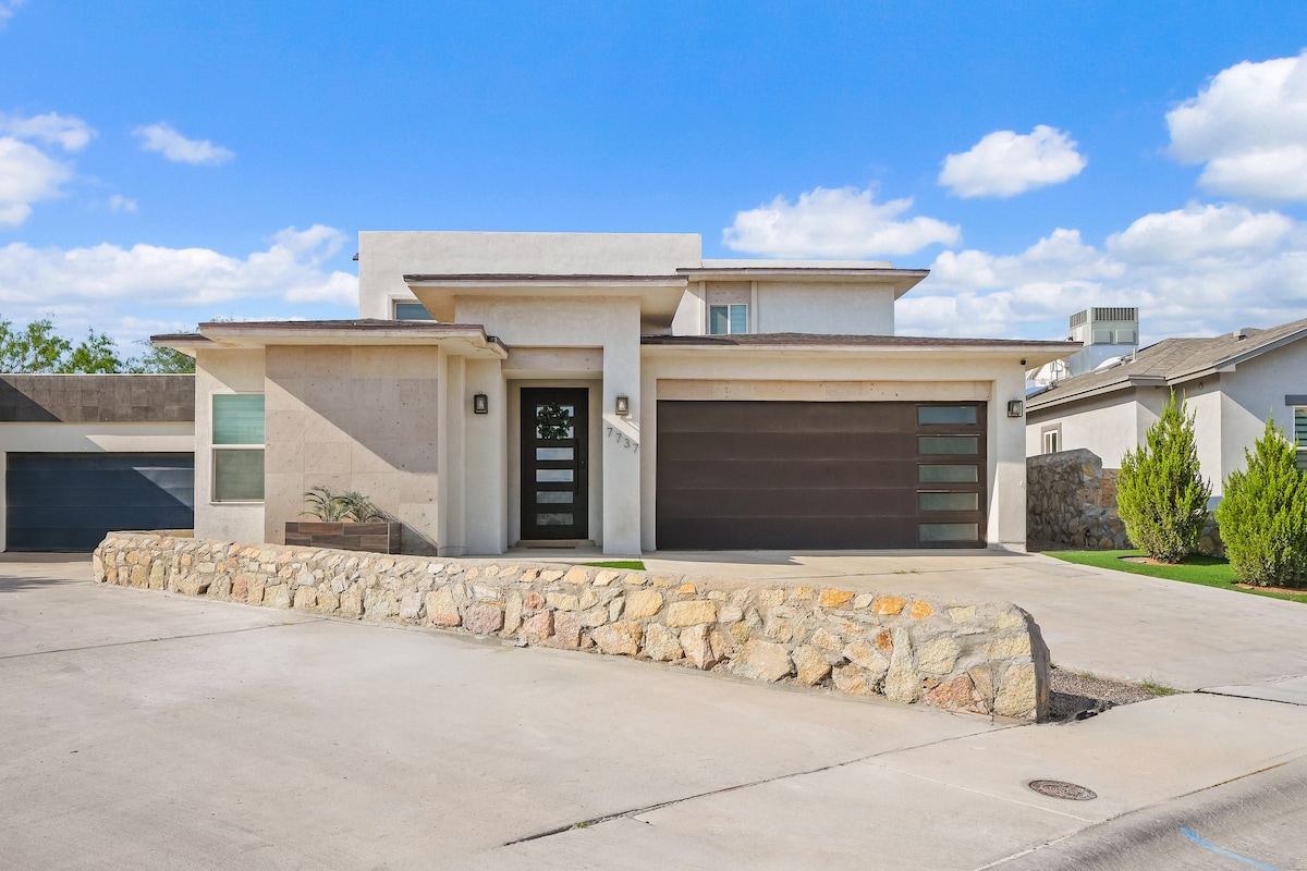 Relájate y desconectate en este alojamiento tranquilo y elegante en el corazón del lado oeste en El Paso Tx. Este encantador espacio esta cerca de restaurantes, centros comerciales (Outlet Mall, Sunland Park Mall), hospitales, I-10, Mesa Street, UTEP, Estadio de beisbol Chihuahua, Walmart Supercenter y gimnasios. Cuenta con entrada privada, estacionamiento techado, jardines y una bella alberca. Te ofrecemos auténtica comodidad para visitas familiares, de negocios o esparcimiento. Te esperamos!