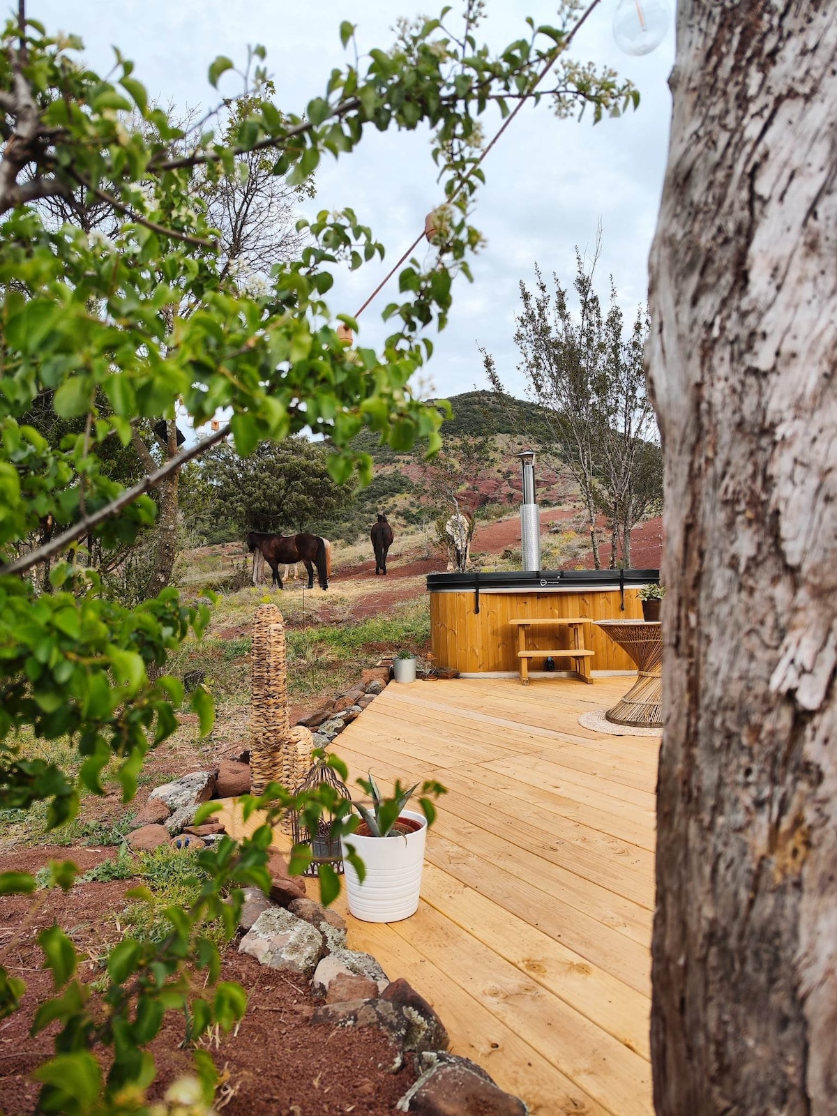 🌿 Unusual accommodation in the heart of the red lands of Salagou Treat yourself to a timeless break in an unusual A-shaped accommodation, in the heart of the red lands of Salagou. Nature reigns supreme, and horses are your only neighbours 🐴 ✨ The plus points of the listing: Private outdoor Nordic bath, heated Unobstructed view of the horses No vis-à-vis, absolute calm Breakfast included 🐎 Optional: Horse riding (by reservation only) 🐕 Animals: Small dogs only (heating)