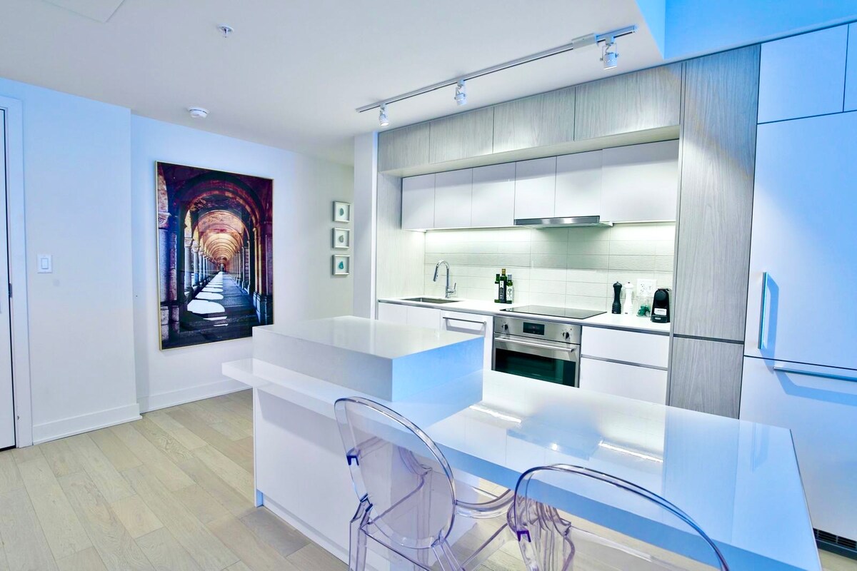 Vous êtes les bienvenue dans la plus haute tour résidentielle de Montréal ,construit en 2021 et situé en plein centre ville de Montréal. Cet appartement moderne est situé au 49 étage vous offrant une vue panoramique sur tout le centre ville. Vous serez à quelques pas seulement du quartier des spectacles, la station métro place des arts, de nombreux musées et galeries etc… Dans ce logement, vous aurez accès à toute les commodité nécessaires pour assuré votre confort.