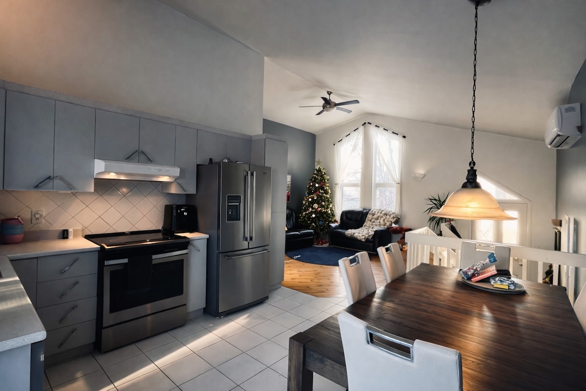 Newly renovated and updated spacious home, elegant and comfortable. Located close to airport on a quiet street in front of a park. Large 3 car driveway. Walking distance to Fairview Mall, grocery stores, several “bring your own wine ” restaurants and to a bus that takes you to public transport that brings you to downtown Montreal. Enjoy relaxing on the back deck under a gazebo, have an evening BBQ then hop in your car and be downtown Montreal in 25 minutes (longer during rush hour)
