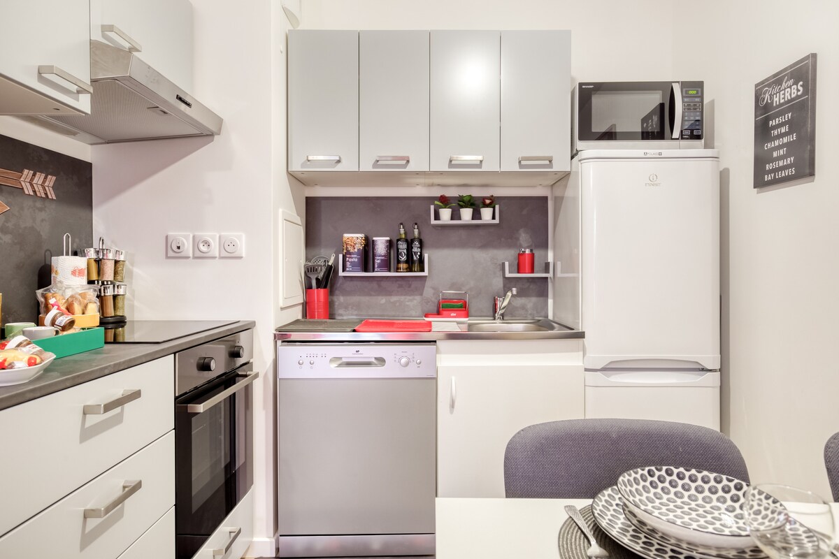 Situated in Paris near the Marais district, enjoy a modern apartment located in a secure residence "Passage Oberkampf". It can host up to 4 people, has a semi-open kitchen, a magnificent Italian shower and a room with a working area and a fast internet connection (fiber). You will find yourself within walking distance of prestigious places such as Cirque d'Hiver, Bataclan, Place de la République or Opera Bastille.