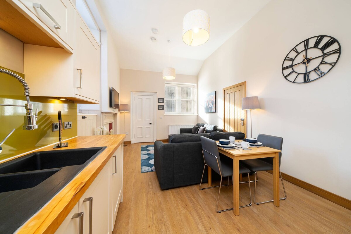 A newly renovated Scottish bothy, set in the grounds of a listed Mill building in the Angus country side. Just a five minute drive or 25 minute walk to the spectacular Lunan Bay. The bothy consists of an open plan dining and living area, one bedroom with king size bed, and a mezzanine level with two singles which can also be joined together to form a super king. It's a lovely bright and cosy building with underfloor heating and a modern kitchen.