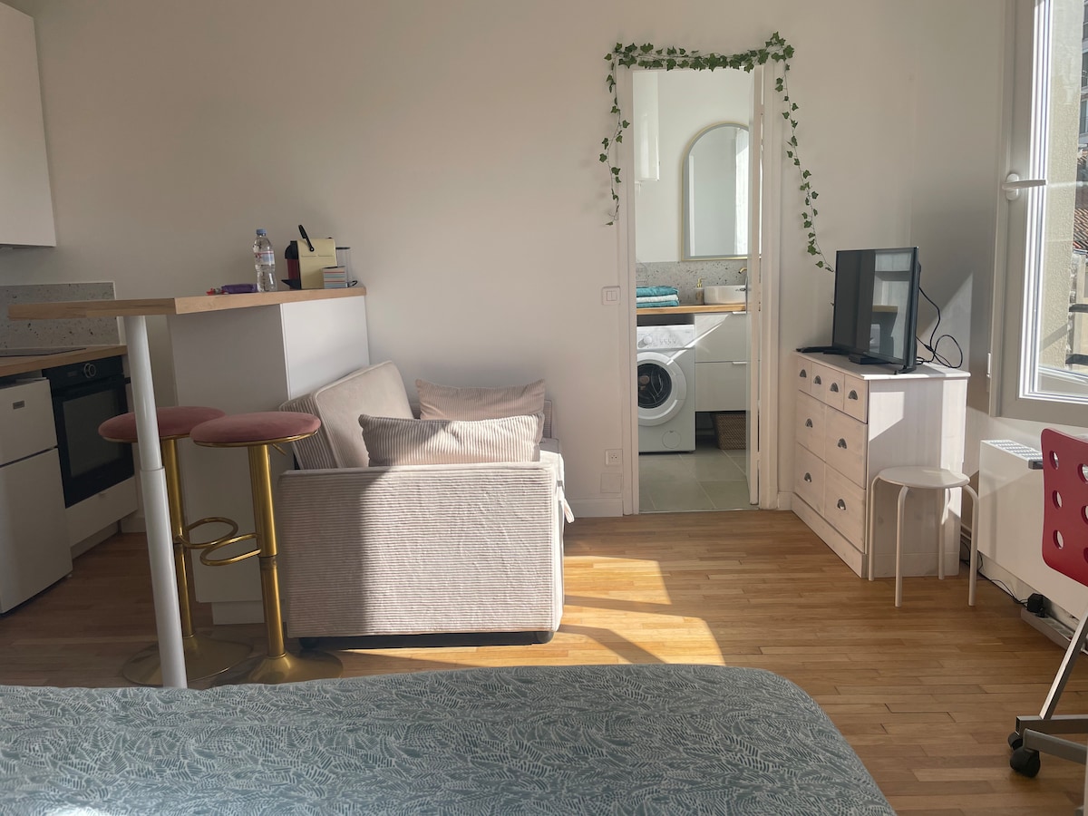 Ideal location 10 minutes from Paris 25 m2 studio 2 minutes from metro line 4 "Barbara" perfect for 1 person. When you are 2, please select 2 guests. Completely refurbished and perfectly equipped. Fully equipped apartment 5 minutes from the city center, close to all shops, bars and restaurants. The property overlooks the courtyard and is located on the second floor without elevator access. Equipment: Wi-Fi, TV, microwave, washing machine, coffee, kettle.