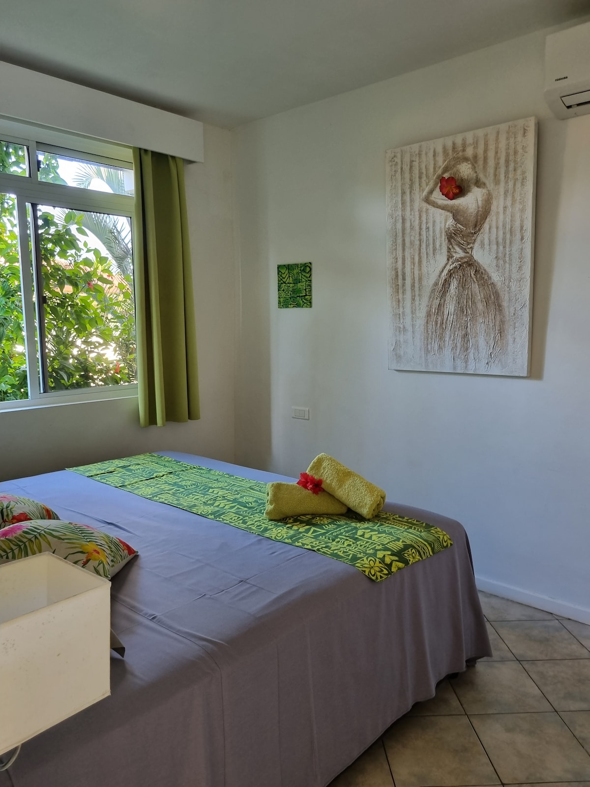 Enjoy with family or friends this fabulous accommodation, located in Maharepa, 7 minutes by car from the ferry dock, 2 minutes from the airport, and close to all amenities such as supermarket, pharmacy, banks, shopping mall, hotels and bars. Easy to access, it is located in a private easement about 100 meters from the main road. We look forward to being able to bring you the exoticism you are looking for from Polynesia. So I'll see you soon!