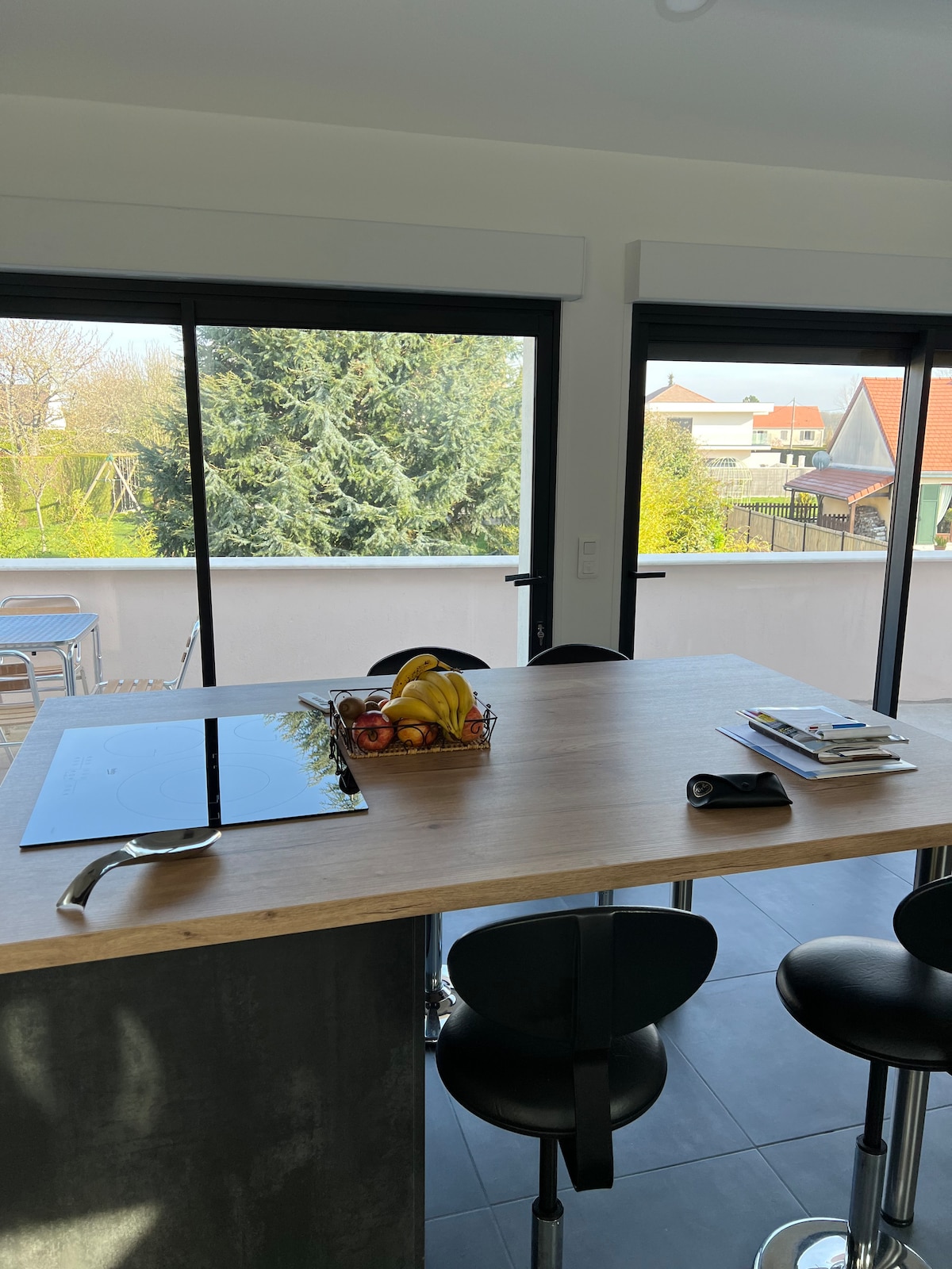 We welcome you to this recent studio, independent of our home (only the entrance of vehicles is common), carefully decorated. This one is composed of a night part with a bed of 180 cm that can be divided into 2 beds of 90 cm. The studio has a desk area, a kitchen equipped with fridge, microwave grill, coffee maker, kettle… The entrance to the garden is sloping. We have a dog at our home that we can lock up if needed.