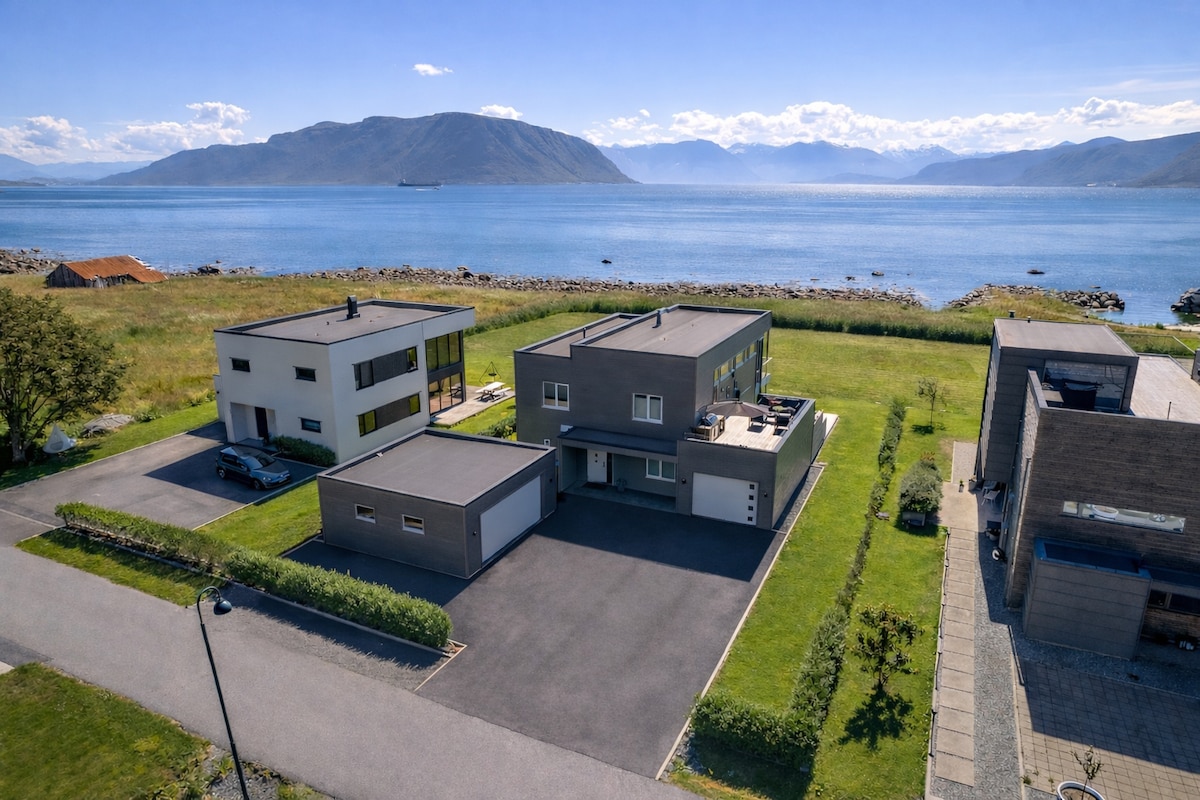 Large and modern villa with fjord view near sea