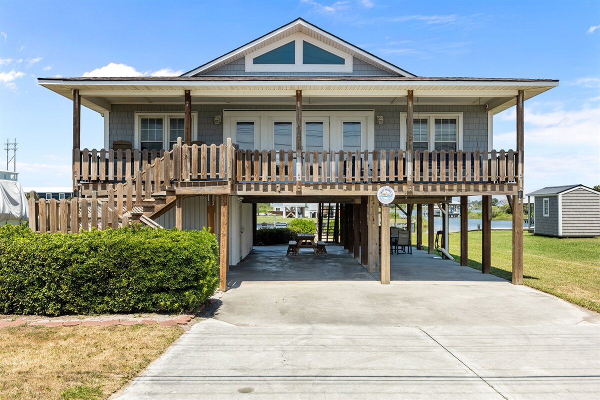 Soundfront stunner on Harkers Island. Your front-row seat to NC's Crystal Coast: a quiet waterfront home w/ our own private beach. Bring your boat and leave it tied off at our private dock. The main-level deck is the star - sip sunrise coffee with 180° waterfront views and frequent dolphin sightings. House includes a two-person kayak + beach gear, new outdoor shower, blazing fast Wi-Fi, and sleeps 9 (3BR/2BA). Minutes to great eats on the island; Historic Downtown Beaufort just 20 mins away.