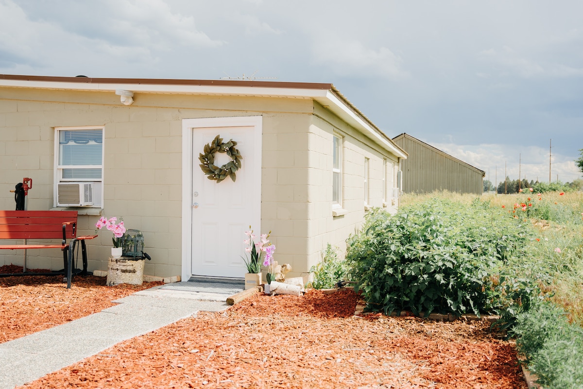 Enjoy the peace of country farmland in this cozy 1-bedroom cottage, with downtown Idaho Falls just ten minutes away. Cook up a few fresh eggs in the kitchen, and you might notice our hens wandering through the backyard flower garden. You can enjoy skiing, hiking and other outdoor fun in the nearby area. Originally a milking shed, the Cottage is full of character! It's best used by two people, but four could fit in with the sofa bed.
