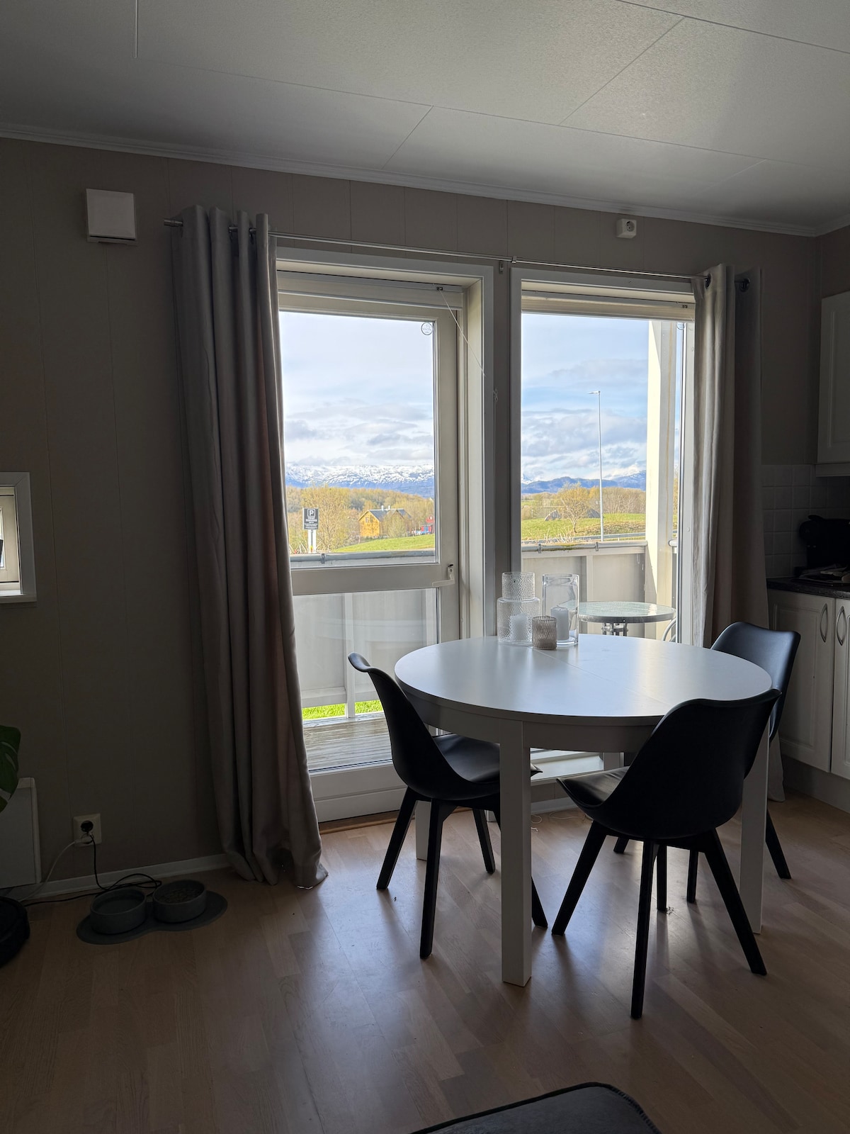 Welcome to a bright and cozy apartment with amazing views of Børvasstindan! The apartment is located by highway 80, with a scenic area behind the residential area - perfect for those who want easy access to the apartment, but at the same time quiet nice hiking areas and a comfortable base. Short distance to mountains and fjords. There is usually a dog in the apartment, so be aware of this. So I welcome four-legged friends! Please let me know if you have any questions - Looking forward to welcoming you!