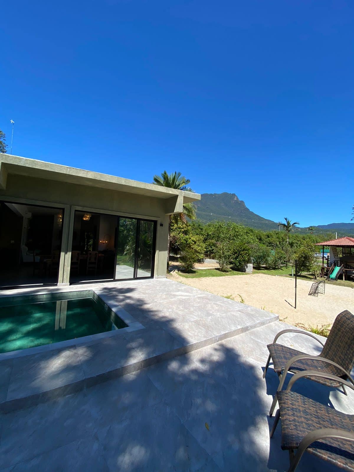 Experience unforgettable moments in this unique place, ideal for families. House on the banks of the river with a beautiful view of the Marumbi peak and swimming pool (not heated). A place to rest, bathe in the river or pool, ride a bicycle, hike to visit the nearby waterfalls, and enjoy Morretes with all the comforts. The house has a kitchen with a stove, living and dining room, 3 suites, indoor fireplace, swimming pool, playground and beach tennis court. WE CHARGE PETec FEE