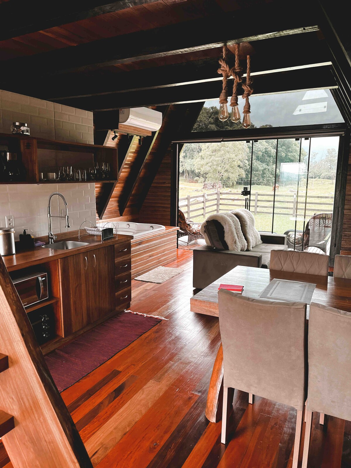 A Cabana Monteiro está em uma propriedade repleta de histórias e lembranças da família Monteiro. Cada espaço carrega memórias de momentos simples e especiais, vividos com união e aconchego. Ar condicionado; Cozinha completa com Air-fryer, micro-ondas e fogão; Fogão a lenha; Espaço externo com fogo de chão; Churrasqueira; Café da manhã; Tv smart; Disponibilizamos toalhas de banho;