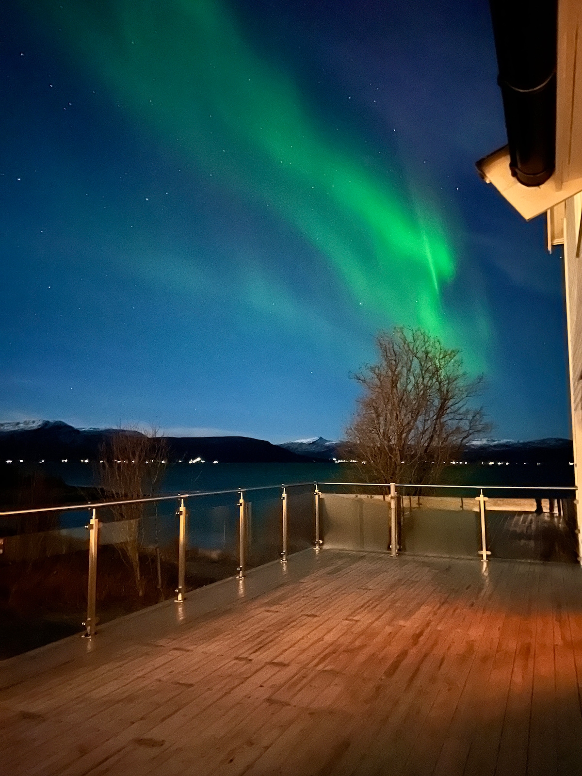 Looking for a magical, romantic escape? This modern and cozy studio offers an unforgettable view of the Aurora, away from city lights. Just step outside to your private floating quay for a pristine, unobstructed Aurora experience. Everything you need for a perfect night outdoors is included. Rent a private sauna with access to the quay for a refreshing dip in the polar waters—perfect for photo moments! Just 12 minutes from the airport, your space is private and faces a quiet parking area.