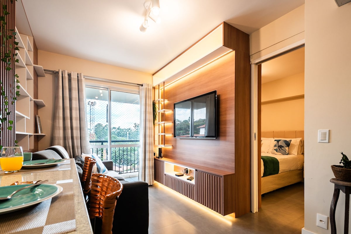 Furnished and decorated apartment with a focus on comfort and practicality, designed to make your stay as pleasant as possible. Designed to offer a welcoming and functional experience. Ideal for couples, business travelers, and families. Sleeps up to 4 people: 2 in the suite and up to 2 on the sofa bed in the living room (3rd and 4th guests with additional fee). Strategic location, we have nearby: Albert Einstein Hospital Morumbi Stadium São Luiz Hospital Government Palace Band TV