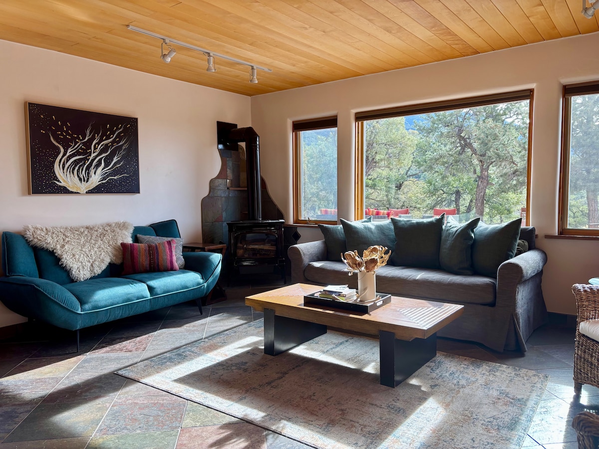 Take it easy at this unique and tranquil getaway. Perfect for meditation retreats, solitary or small group, writing retreats, forest bathing, and other nature inspired and creative endeavors. Also ideal for memorable family vacations. Close to the Tashi Gomang Stupa, The Great Sand Dunes, hot springs, and more. A beautiful 40 minute round trip walk to the ziggurat from the front door. Let go and enjoy the creeks wise ways and all the wild loving energy of towering trees and spirit animals.