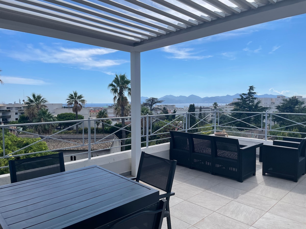 We are offering for rent our beautiful family apartment that we have just completely renovated with the help of an architect A 15-minute walk to the Croisette and the train station, it has a terrace with an incredible 360-degree view of the sea, the bay of Cannes and California Ideally located, quiet, while remaining close to shops and the city center, it is fully equipped with high-end amenities All you have to do is drop off your luggage and have a wonderful time