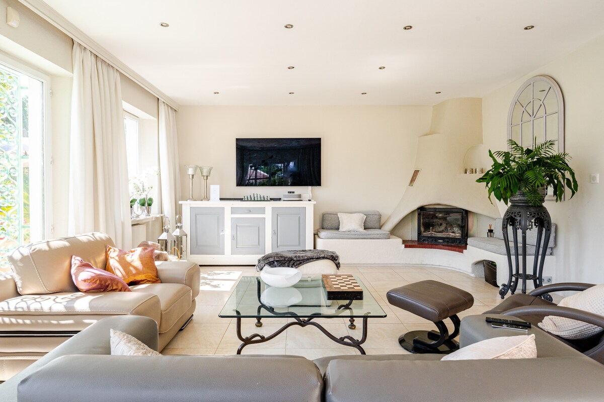 Single-storey house, 130m2, comprising 3 bedrooms and an office that can accommodate 6/7 people, 2 bathrooms with WC, one with bath, 1 other separate WC, 1 kitchen opening onto the living room with direct access to the garden and pool for lunch or dinner outside, living room with TV, garden (1000m2), 6x8m pool with integrated deck and stairs, deckchairs, barbecue, plancha, garden furniture, quiet, surrounded by greenery, 5 min from Mougins Old Village.
