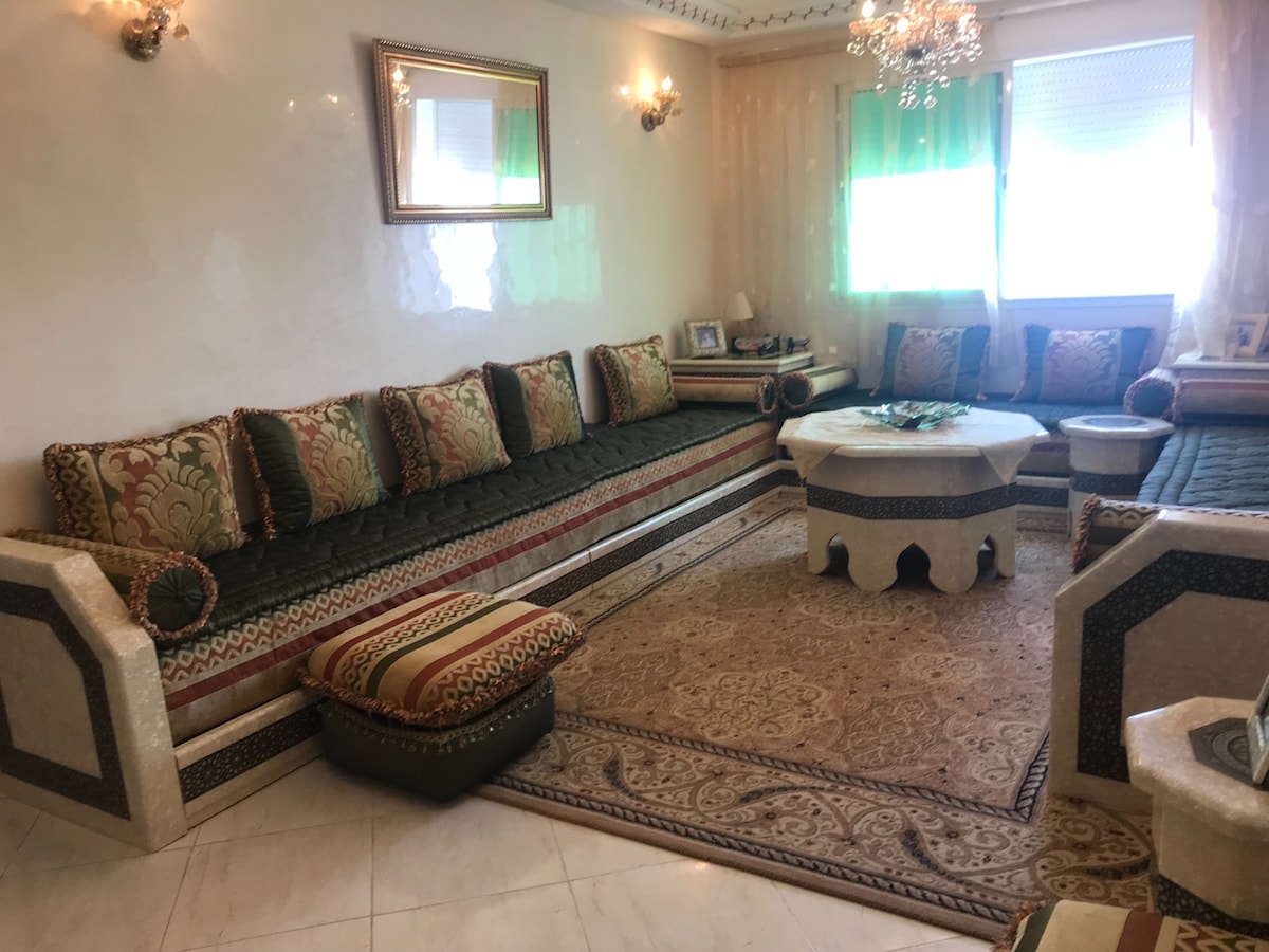 Beautiful peaceful apartment offers a relaxing stay for the whole family, located just 10 minutes from downtown in a quiet area. This bright property has a sunny terrace, offering everything you need for a comfortable stay, including board games and Wi-Fi. Optionally, for those who wish, we offer a delicious Moroccan breakfast with mesmen, hericha, honey, cheese, Moroccan olives...