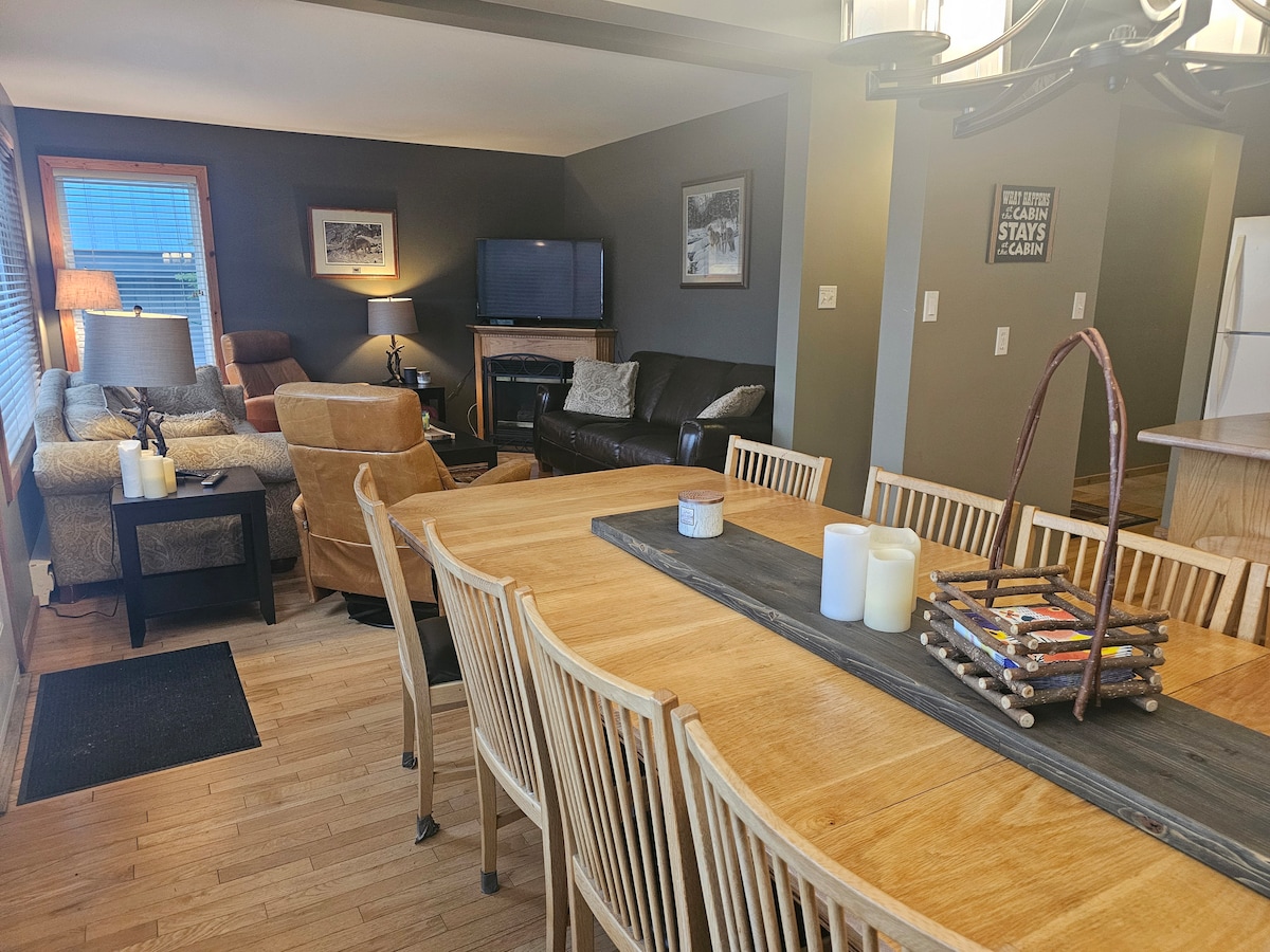 Fun Upper Unit of Chalet for Family & Friends to hang out and enjoy the Mountain Winter weather with Ski in/out w parking. Simply relax by the f/p while games are played at the table, enjoy some charcuterie after your Apres Ski Sauna or a Big soak! Within 15 min walk to the main Alpine Lodge or a quick ski to the Hawk chair with the bonus of a hill for sledding, viewable from your back deck! Best of all worlds! TV's in all rooms w/ streaming devices! Pets and kids welcome with room for all!!