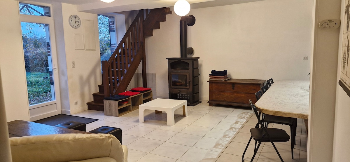 Detached house, attached to the owner's house, with separate entrance. It is ideally located in the center of the village of Saints-en-Puisaye, 15 minutes from the Château de Guedelon, 20 minutes from the Château de St Fargeau, Lake Bourdon, 10 minutes from the house and the Colette House and Museum in Saint-Sauveur-en-Puisaye, Arcy-sur-Cure Caves. Ideal for people with reduced mobility, the house is fully adapted: single-story with electric gate, walk-in shower, electric bed, etc...