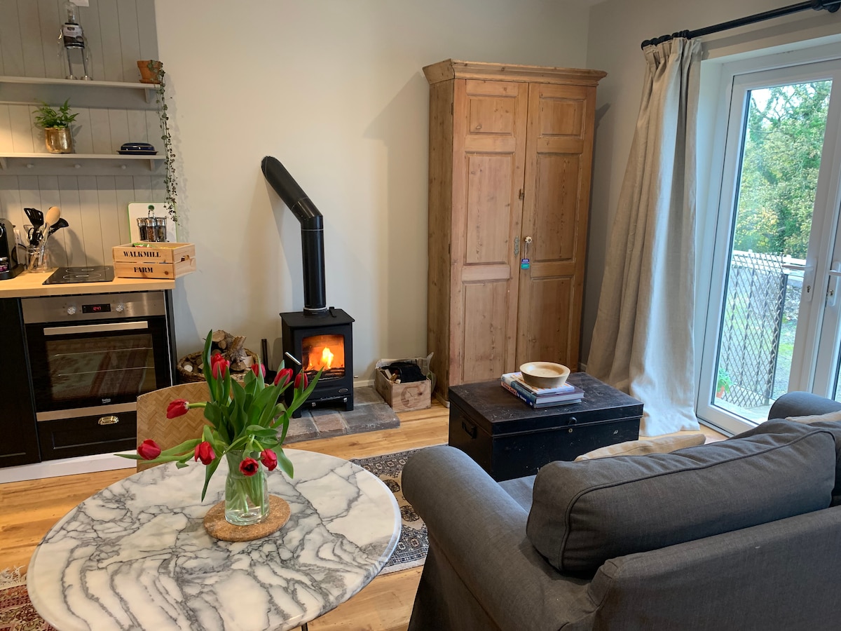 The Black Shack is a luxurious, detail-led Tiny House retreat, with a relaxed open plan living space that features soft leather sofas and a wood-burning stove... a genuine treat after a long day exploring the local area (when you're not unwinding in the private hot tub, that is!) The Black Shack is at the rear of Bancran School our family home and in a quiet area. This listing is for two guests however families with kids can contact us.