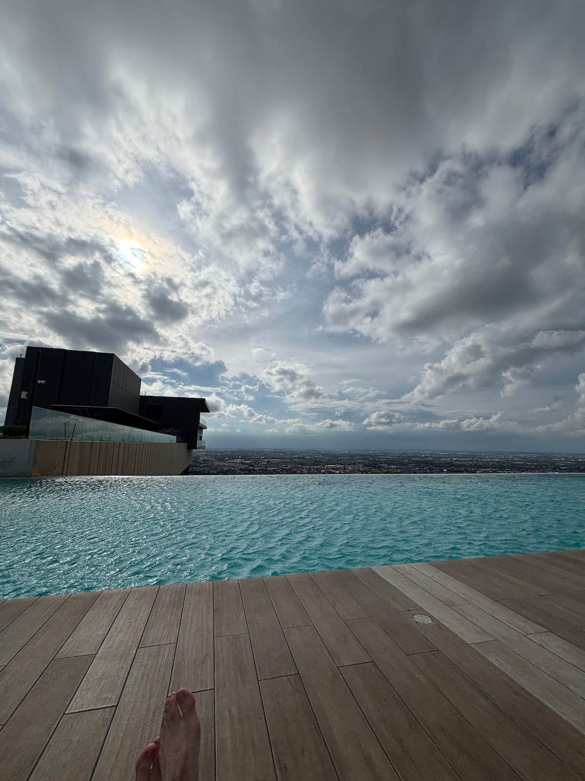 A Spectacular Cozy condominium next to Chao Phraya River a very high floor with a view of Bangkok skyline from bed and patio .. There are lot of sunlight comes in the room through out the day with lot of energy and good vibes 🤍 Facilities upto 3 huge swimming pools with the signature infinity sky pool on 56th floor with stunning river and sunset view, there is a clubhouse with games room, Co-working space infront of river as well with 360 degree view of Bangkok :)