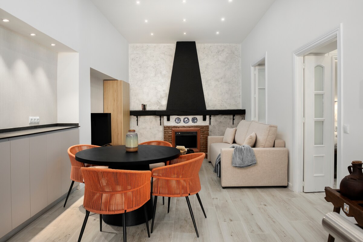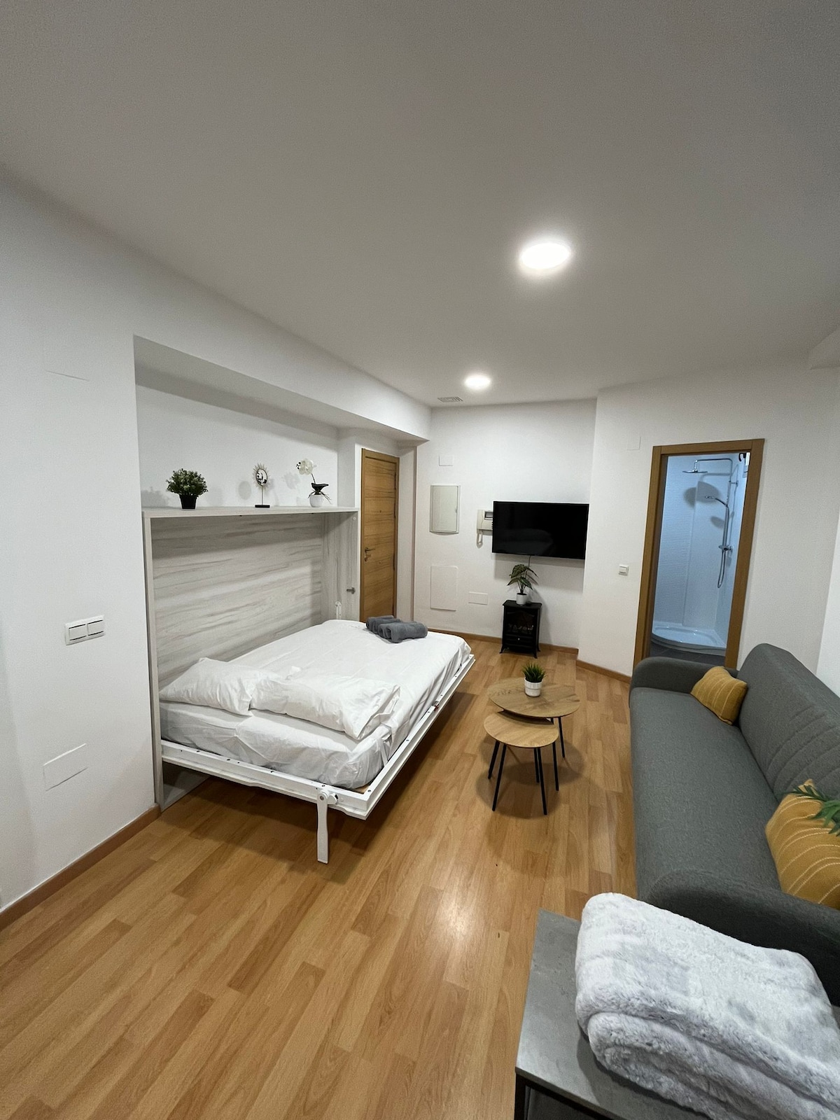 Welcome to our cozy apartments near Merced Square! Here you will find everything you need for a comfortable stay: a cozy bedroom, a fully equipped kitchen, a comfortable bathroom, a functional work area and a spacious living room with an electric fireplace, enjoy a cup of coffee on the balcony. The perfect place to relax after a long day of sightseeing in Malaga! Welcome!
