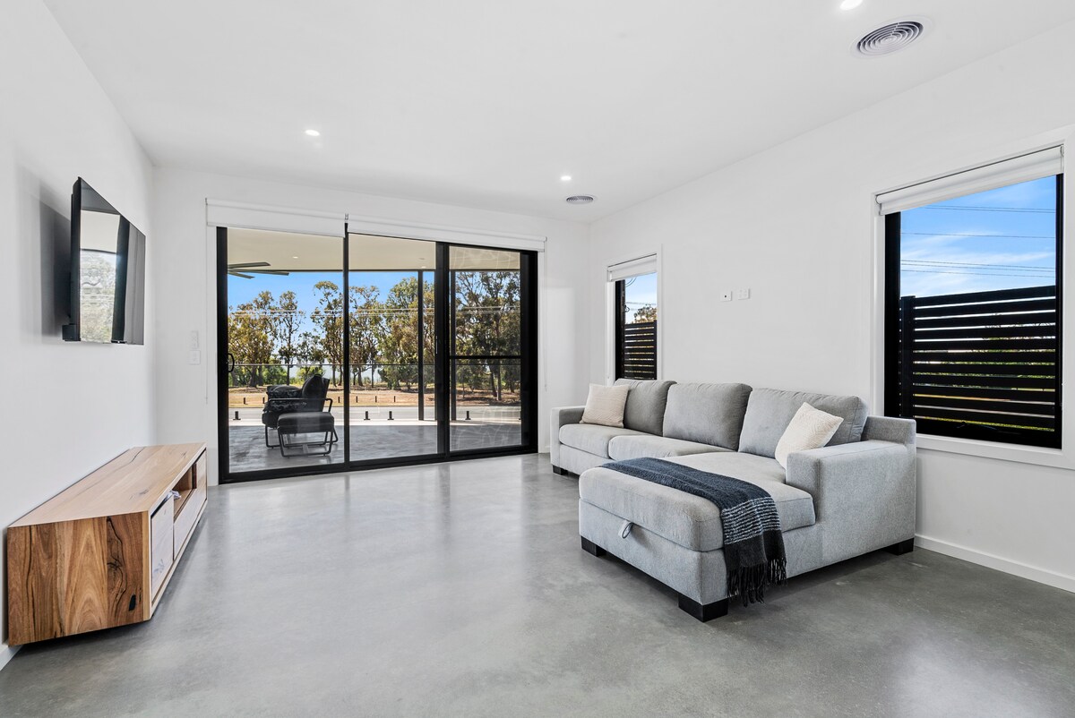 This brand new home is suitable for the whole family located directly across from the lake and only 150m from boat ramp. The beautiful home offers 4 bedrooms (master bedroom upstairs with ensuite and master bedroom downstairs with ensuite), 3.5 bathrooms and 2 separate living areas. Triple garage is big enough to store two vehicles, with one side able to have the boat hooked up and stored undercover. It also has enormous balcony and alfresco areas with views of the majestic Lake-Mulwala.