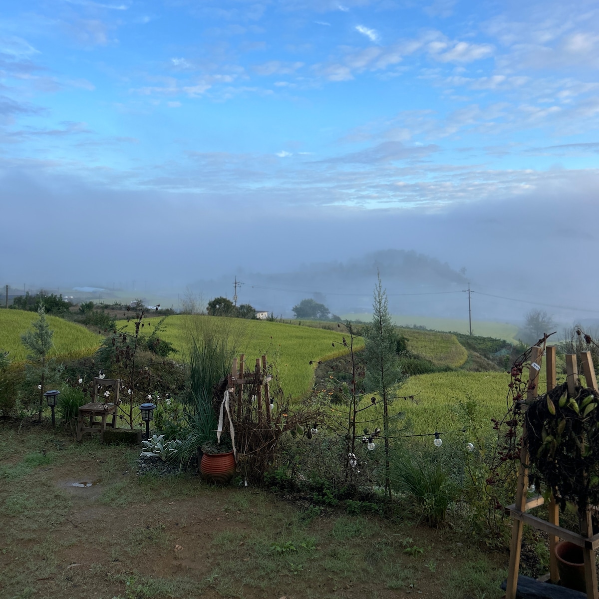 Hanok stay where you can enjoy the attic Turn on the attic of Ruga. This is a private accommodation where only one team can use the main building and a separate building of 26 pyeong in a 100 pyeong yard. Hanok Stay Ruga has enough space for couples and 4-5 family trips, with a comfortable private accommodation space like a hotel and a separate kitchen with a fairy-tale European feel. The spacious yard is composed of pretty flowers and landscape water and is suitable for children to play. It is a great place to read books, listen to music, relax quietly, drink tea, enjoy the scenery of the village, or enjoy a half-bath and relieve the fatigue of travel. In the evening, you can enjoy a barbecue even if it rains in the separate kitchen, and it is a sensational accommodation with both coziness and comfort to make wonderful memories by watching the stars in the night sky with the sound of grass bugs and making a fire in the yard. It is 3 minutes by car from Pungsan-eup, Andong-si, and 10 minutes from Byeongseonseowon Buyongdae, Hahoe Village, Gyeongsangbuk-do. Breakfast includes sandwiches, drinks, and rice noodles for free, and capsule coffee, coffee beans, and Osulloc tea are provided.