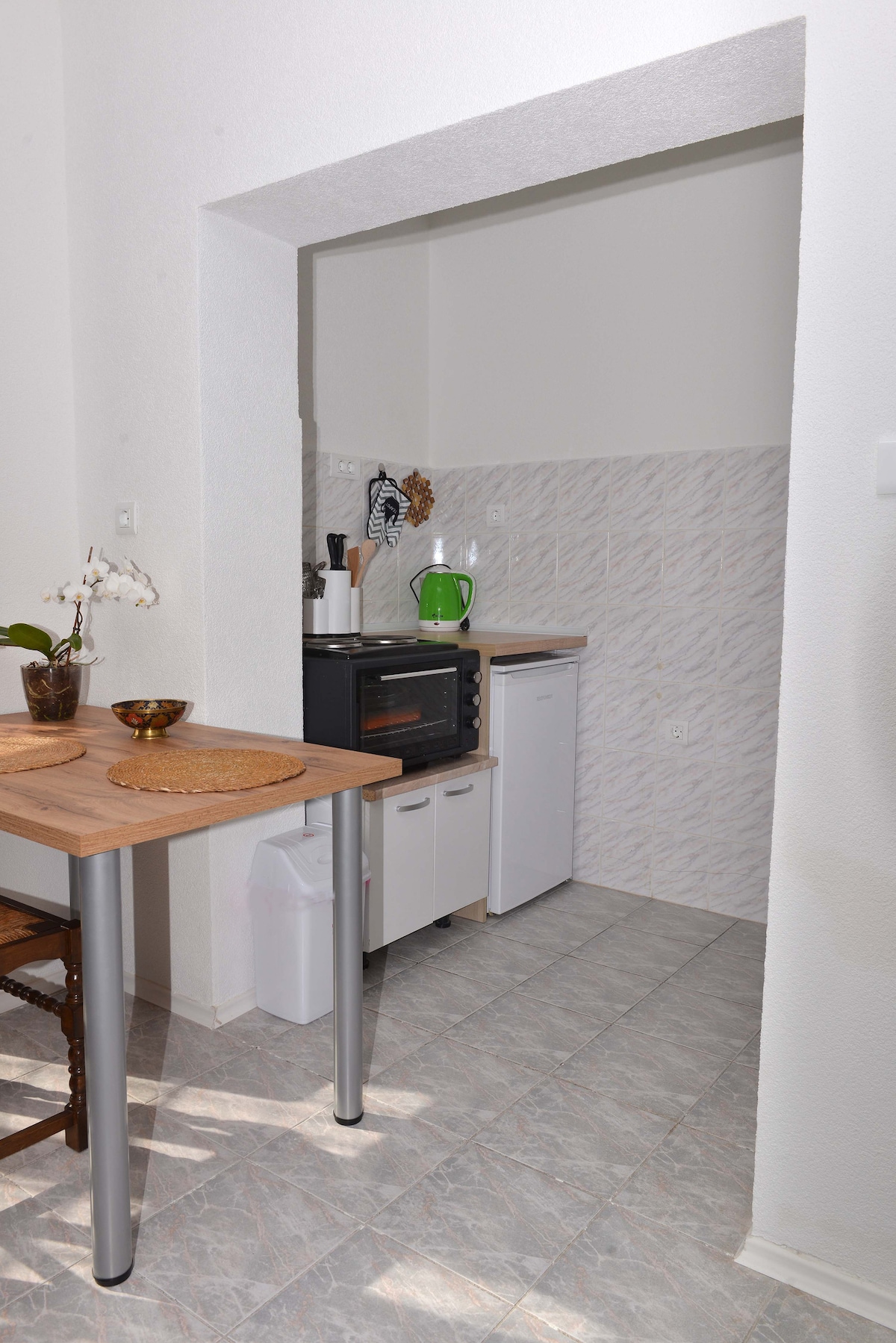 Studio for 2 person it's only two minutes from the center of the town. It's eguiped with one double bed, kitchen with fridge and mini oven , cable tv, free WiFi, towels and private bathroom . This accommodation is suitable for those who want to be in the center of the old town. Everything you have to visit in Ohrid, historical monuments, church...is several meters from you, the airport is 10 km from us, and the bus station 5 km far. We will help you to answer to all your questions if you need..