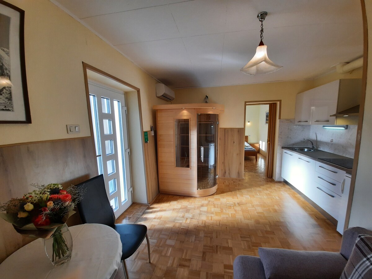 Luxurious RUBY Apartment in CENTRE Kobarid is located in the heart of the city center. It has an available parking place next to it and easy reachable with an elevator to come to the second floor. The apartment is 55 m2 and it is composed of one bedroom for 2 persons and small sauna, kitchen, dining room and living room with extra bed and sofa. The apartment is modernly equipped to make your holidays unforgettable.