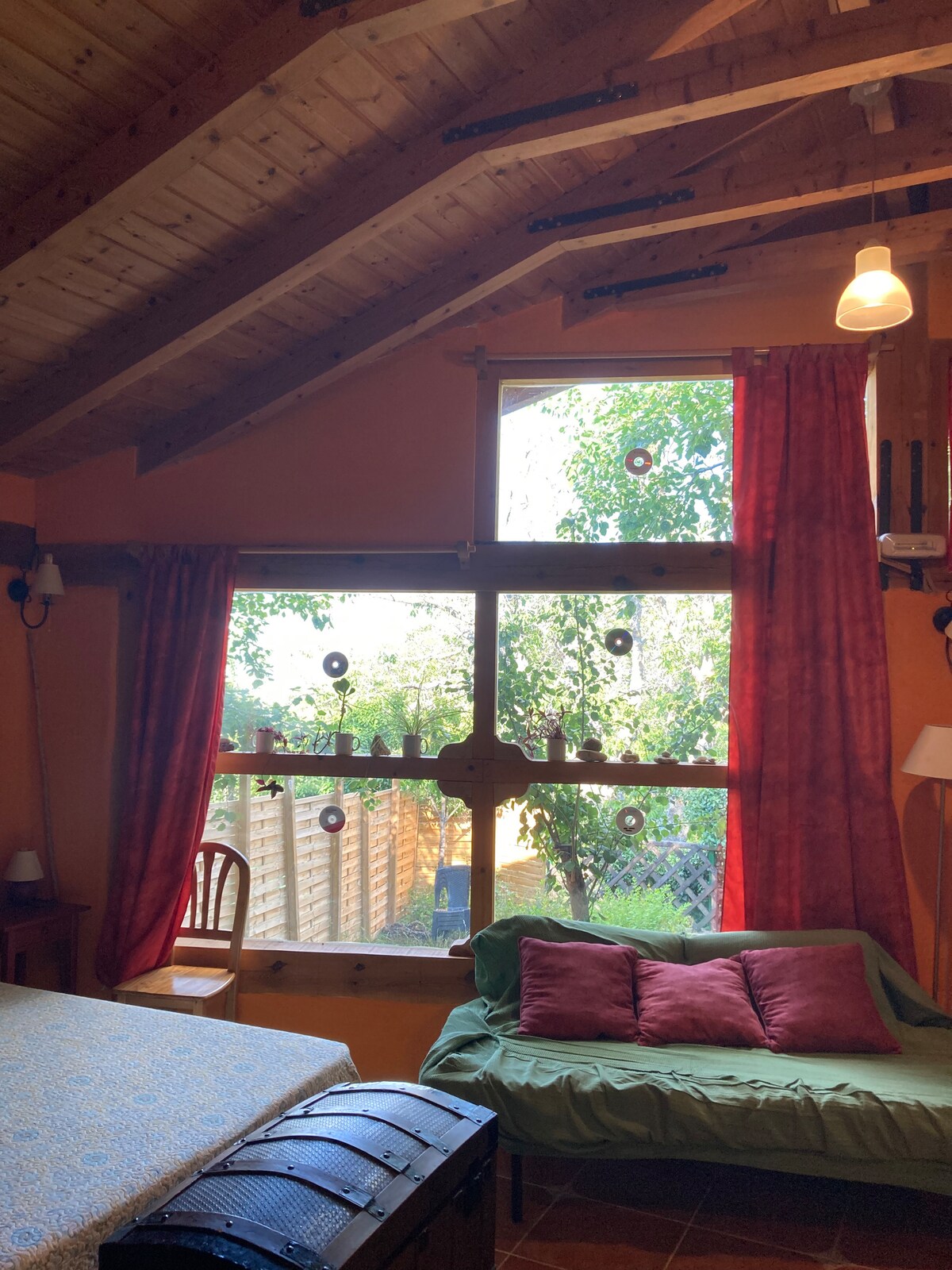 Independent house ideal for couples and small families. Parking and private garden, not shared, porch and barbecue It's not a room, it's a beautiful cottage. Open concept living room. Living area facing the wood-burning fireplace and smart TV, dining room with integrated kitchen, full bathroom, double sink and beautiful bedroom with XXL bed. Next to exit 375 of the A66. Ideal rest between north and south Check if you're coming with a pet. The pool is 100 meters away and is communal