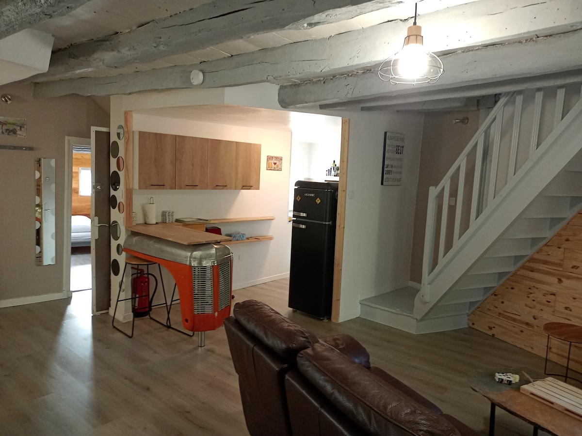 This fully renovated apartment of about 50 m² is located in the heart of the village. It offers you a beautiful "cocooning" space in a quiet and warm environment. Bakery, Pharmacy, Bar, Tobacco/Press are at the foot of the building. Large supermarket, restaurants, catering and other local shops are accessible within 500 m. This accommodation can accommodate 4 people with its kitchen open to a large living room equipped with a sofa/bed, a single sofa and a bedroom with double bed.