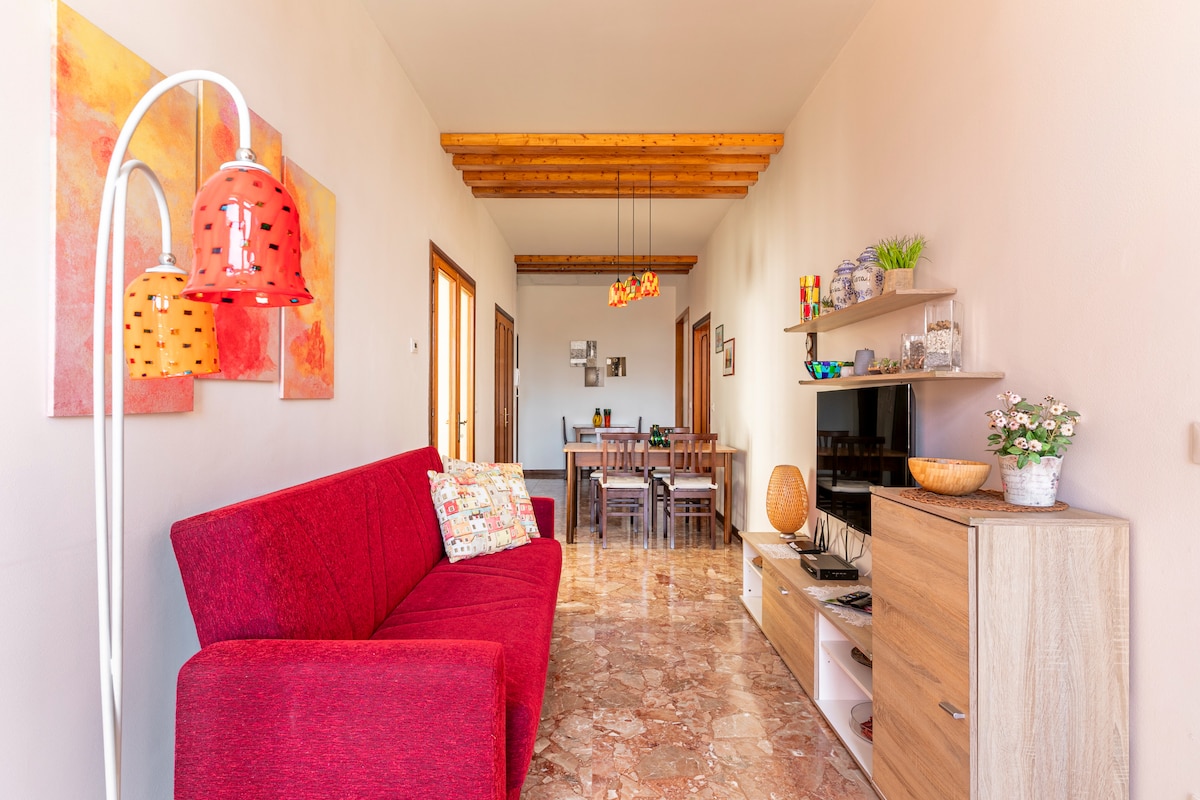 “Casa Marisa” is an apartment located in the center of the island of Murano just minutes from Venice and in a strategic position for connections to/from the airport. The apartment is located entirely on the ground floor with a single door entrance that directly overlooks the Campo and has an exclusive private internal courtyard. The apartment is completely renovated and furnished with a family-friendly stay in mind or for small groups of friends.