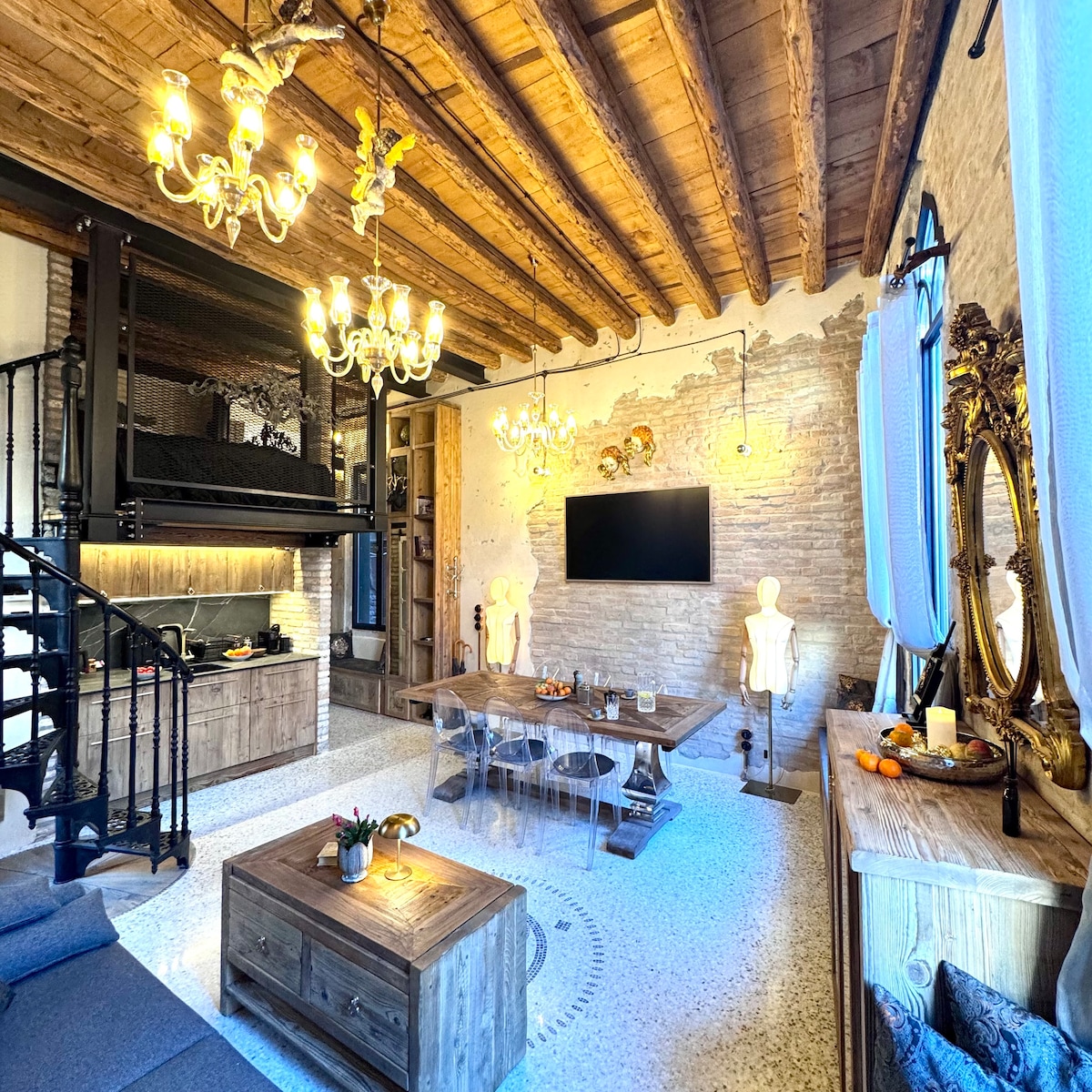 Relax in this cozy industrial loft located in an old Murano factory. The house consists of 1warm entrance 1 kitchen equipped with the latest generation appliances 2 bright and comfortable bedrooms 2 full bathrooms, one has a dryer and washing machine Located in a position where you can see the landscape of Venice. Also in the splendid Murano it is possible to visit Roberto's glass factory where it is possible to create your glass masterpiece.