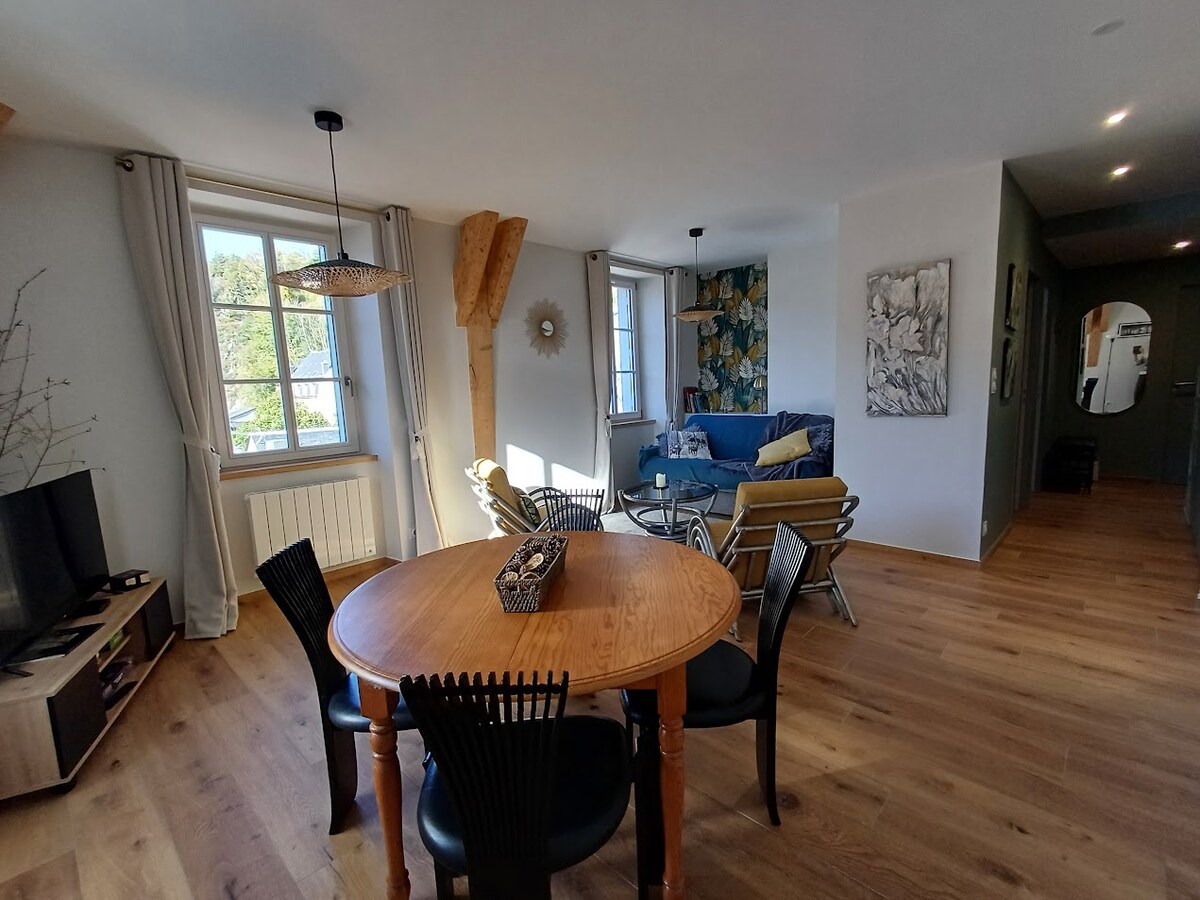 Beautiful view of the Sancy. South-facing duplex at 1200 meters altitude, 3 km from La Bourboule and its thermal baths, 8 km from Mont Dore and its ski slopes. Many mountain bike and snowshoe hiking trails nearby. Lake du Pré Cahodon with trout fishing less than 1 km away. small kitchen with dishwasher, washing machine, 2 coffee makers including a Senseo, refrigerator with freezer, microwave, one bedroom with 140 bed, a sofa bed in the living room, bathroom with shower, 2 toilets, TV in the living room + bedroom.
