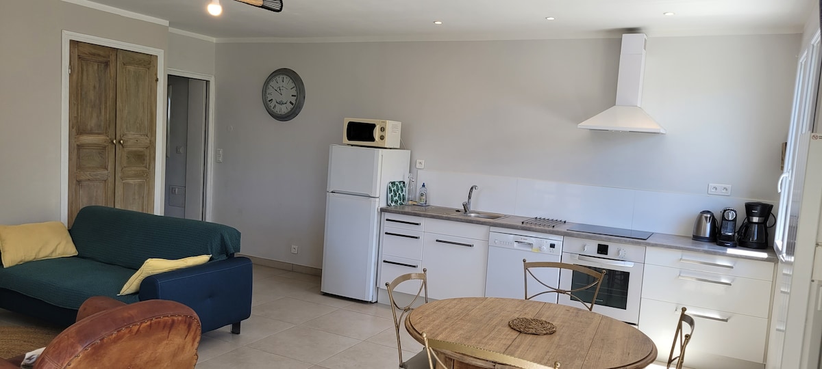 New 35 m2 studio, in a small quiet village with mountain view, private parking, beautiful living room with Wi-Fi, the bedroom has a wardrobe with shelves and a 160 cm bed, a modern and complete kitchen. There is a terrace with garden furniture. Linen and cleaning included. It is 15 minutes from the beaches of Saint-Florent, as well as less than 30 minutes from Bastia Poretta Airport and Bastia Port. Jacuzzi not available from November to March.