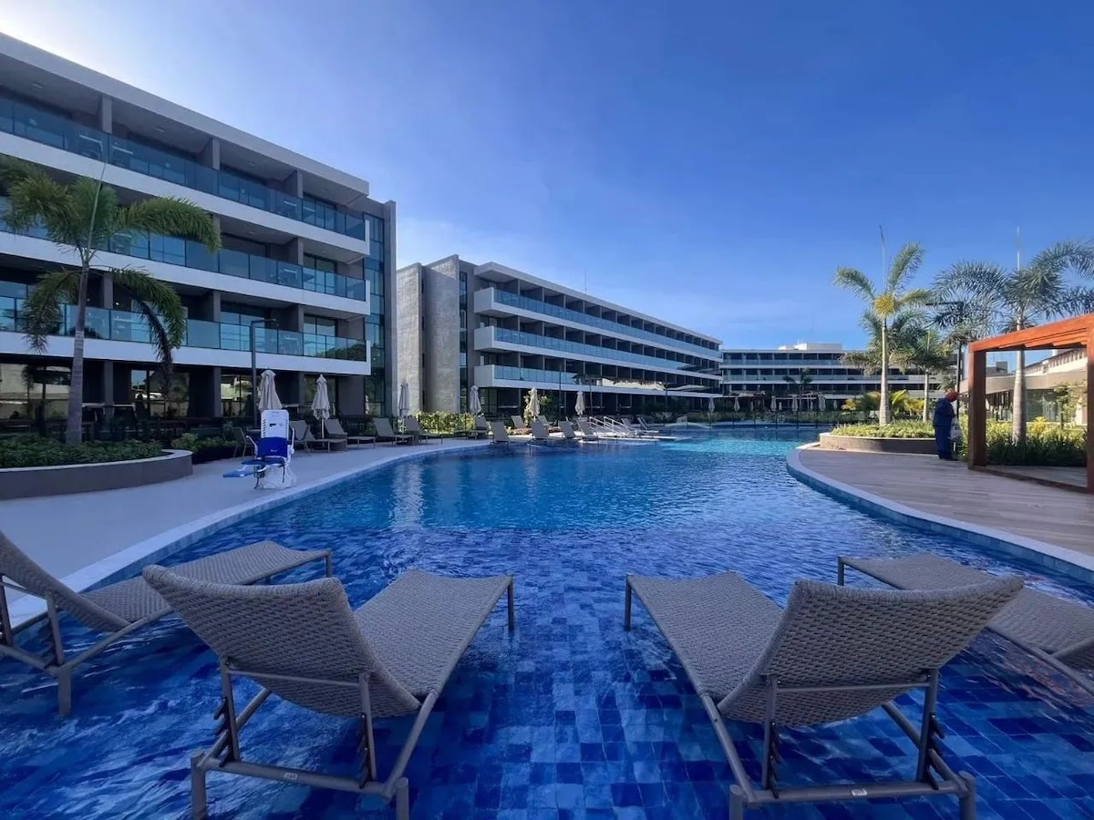 Hospede-se em um resort completo em Muro Alto, Porto de Galinhas. Flat confortável no Cais Eco Residence com piscinas, acesso direto à praia, Wi-Fi e ar-condicionado. Ideal para casais e comporta pequenas famílias que buscam conforto e tranquilidade. Nosso apartamento oferece a combinação perfeita entre descanso, praticidade e lazer — com estrutura de alto padrão, piscinas incríveis, restaurante, conveniência, garagem coberta e check-in 24h.