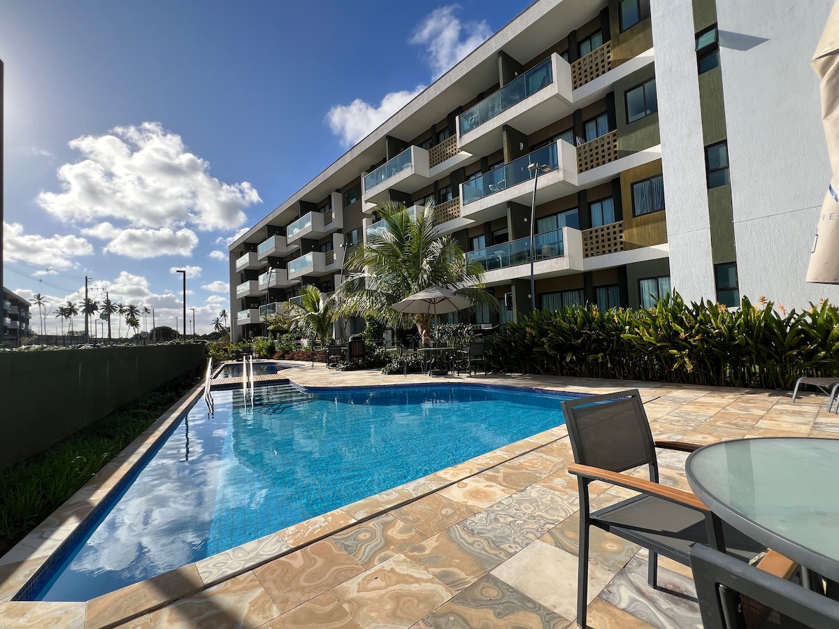 Studio at Marulhos Suites Resort. Queen bed, double bed, extra mattress, air-conditioning, good internet and smart TV. The kitchen has a refrigerator, freezer, coffee maker, sandwich maker and other kitchen utensils. Cozy apartment facing the pools. The hotel is first-rate, featuring multiple swimming pools, a sauna, fitness center, soccer and tennis courts, playground and daily recreation for the kids. I've been renting this and other flats in Muro Alto for a few years, so you can trust me!