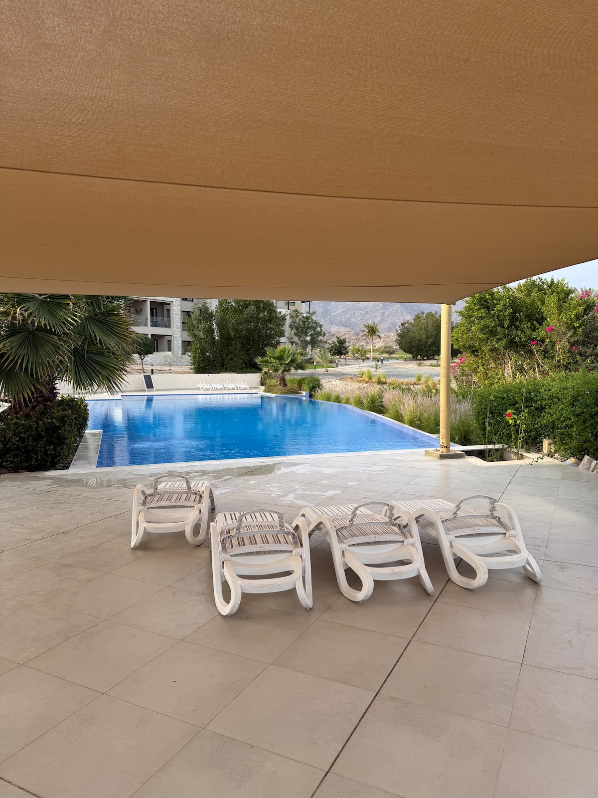 Elite 1 bedroom Apartment in Muscat Bay!exclusive beachfront gated compound. - Direct Access to a Private Beach -Resort-Style Swimming Pool + a vibrant kids’ play area -Cinematic Experience, largest smart TV. -Top-Tier kitchen Appliances in home— outdoor BBQ area. -Dedicated Car parking lot -Fast Wi-Fi -large balcoby with Pool and green view -multi capsule coffee machine -washing machine -super market delivery and cleaners on call note . the pool under maintenance untill 25 January 2025