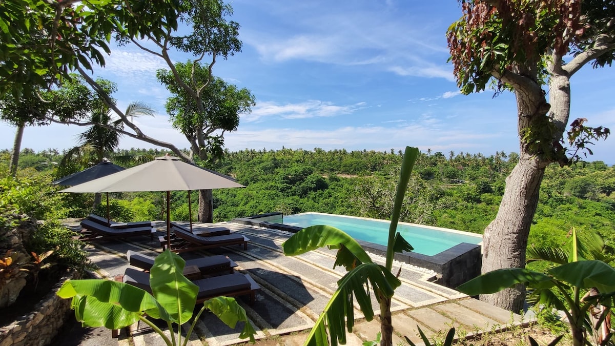 We have 9 brand new bungalows near Crystal Bay, the most beautiful beach on the island. The bungalows are beautifully designed using local material and finished to the highest standard. Each bungalow has its own half open bathroom with hot water and western toilet. All our bungalows have air con and mosquito nets. We have a beautiful infinity pool with comfortable sun beds. The surroundings are magical and serene. Our bungalows are located among palm trees and tropical plants.