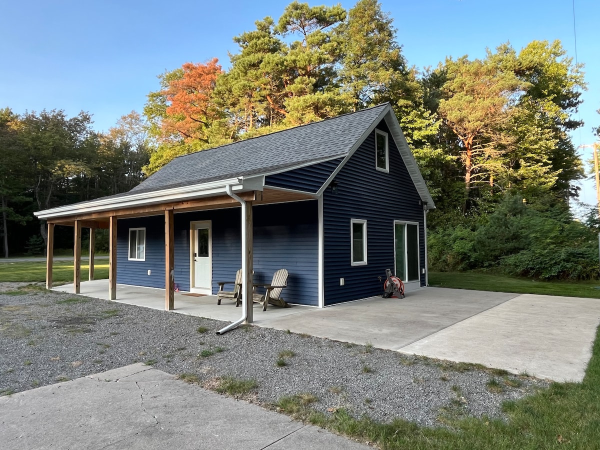 Looking for a one-of-a-kind travel experience? The Cafe is a fully renovated church. This uniquely designed, accessible space, is located within walking distance from Muskegon Lake, just a 10 min bike ride to the beach and 10 min to downtown. The space, once a church cafe, has been renovated with a quartz galley kitchen, large living room lounge space, a custom tiled shower, and modern and eclectic decor.