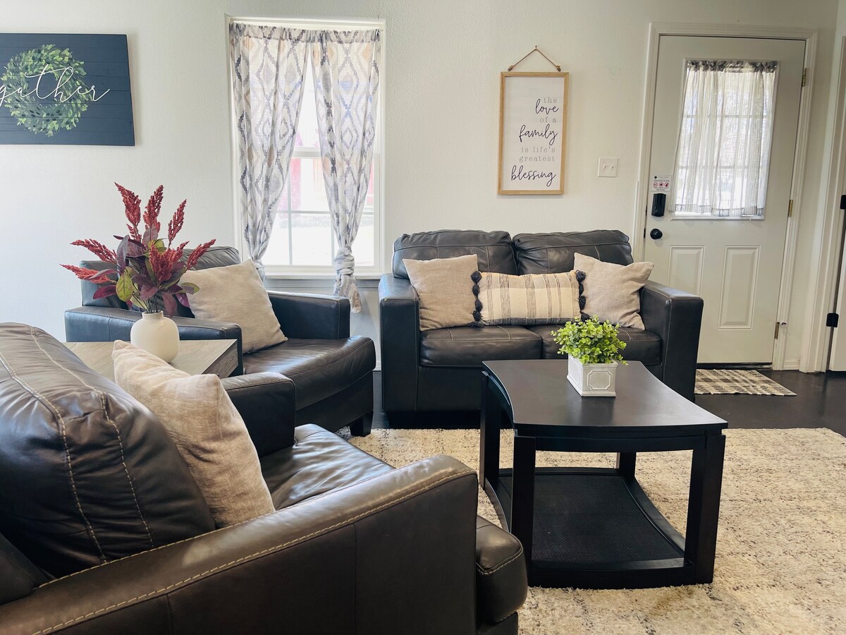 The Muskogee "Country Gem" is your touch of modern country ambiance! Your comfortable home away from home located at the end of a cul-de-sac. Super clean, professionally decorated, well-appointed and just minutes to downtown. Don't miss the beauty of Honor Heights Park or the various events at The Castle of Muskogee. Learn about local music legends at the Oklahoma Music Hall of Fame. We offer long stay discounts-please ask! We will be decorated for Christmas!